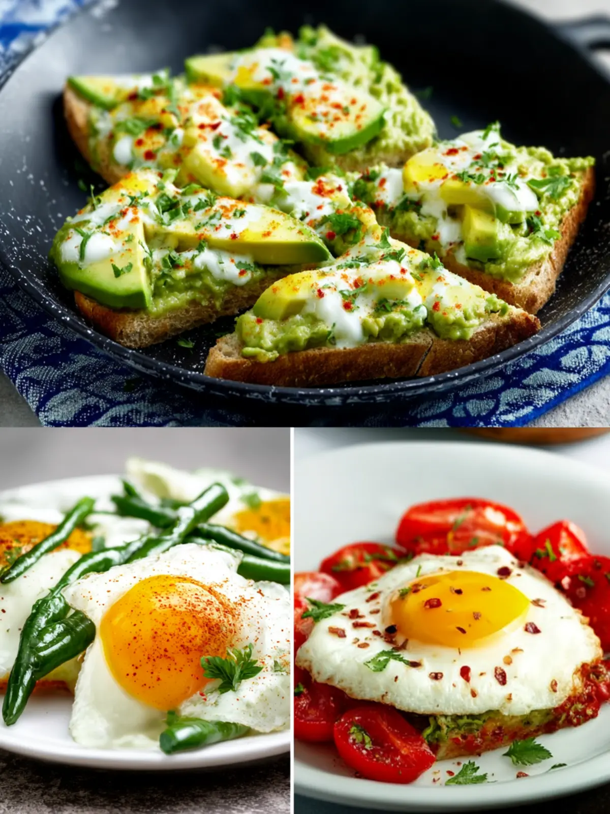 • Avocado toast with toppings: Try adding poached eggs, cherry tomatoes, or even a sprinkle of red pepper flakes for a kick.
