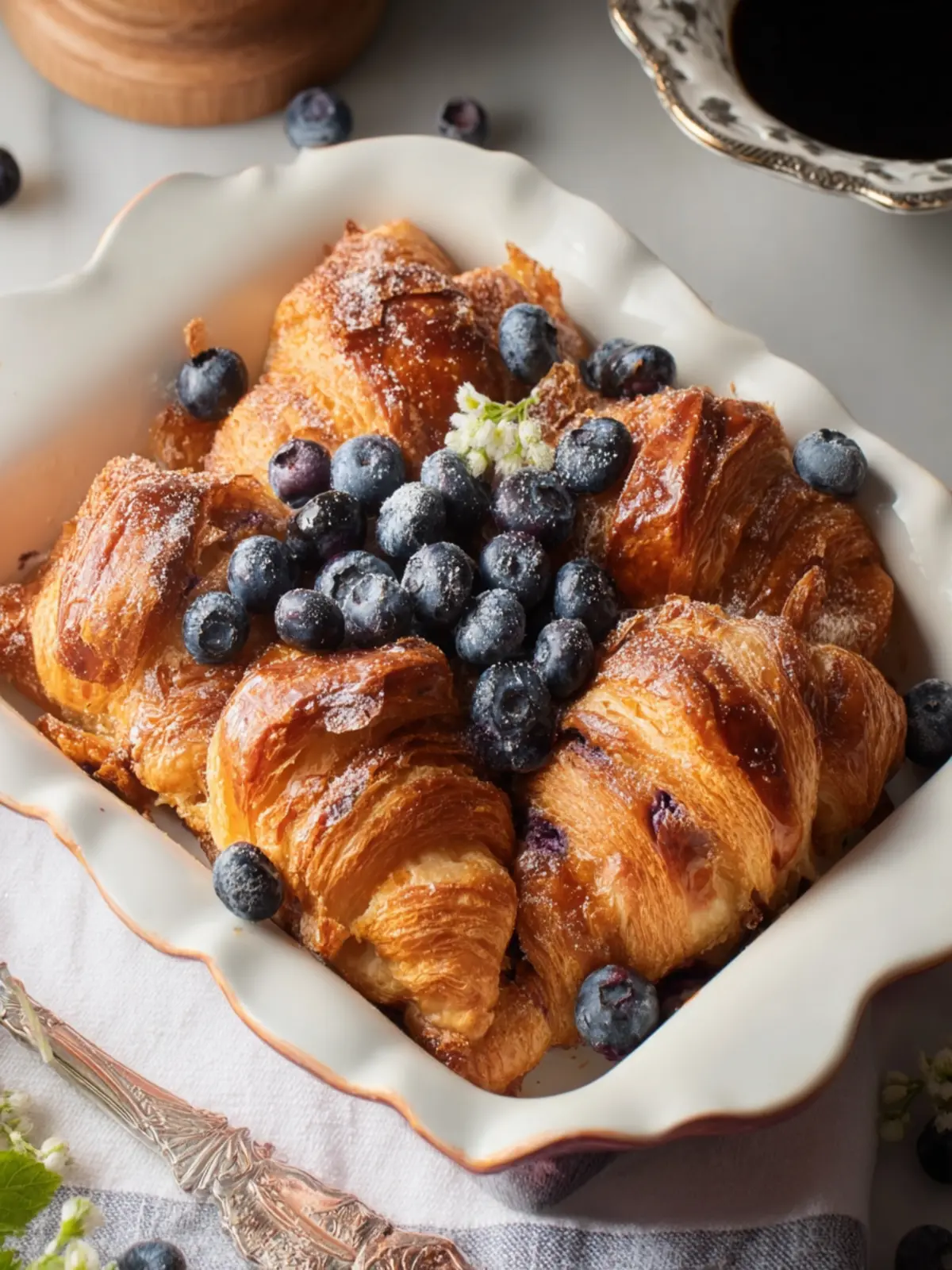 Perfectly suited for gatherings or cozy mornings, this dish offers a harmonious blend of flaky croissants soaked in a rich custard, layered with juicy blueberries. Each bite promises to be a burst of flavor, combining buttery richness and fruity goodness that keeps you reaching for more.