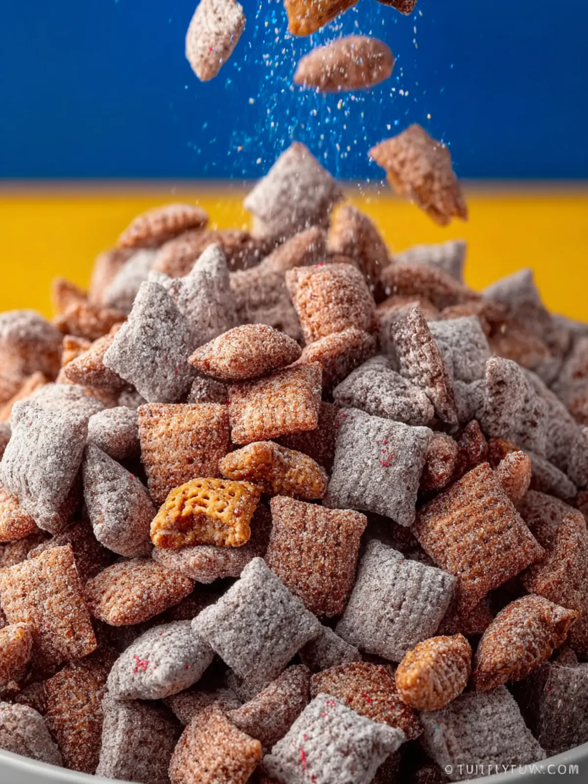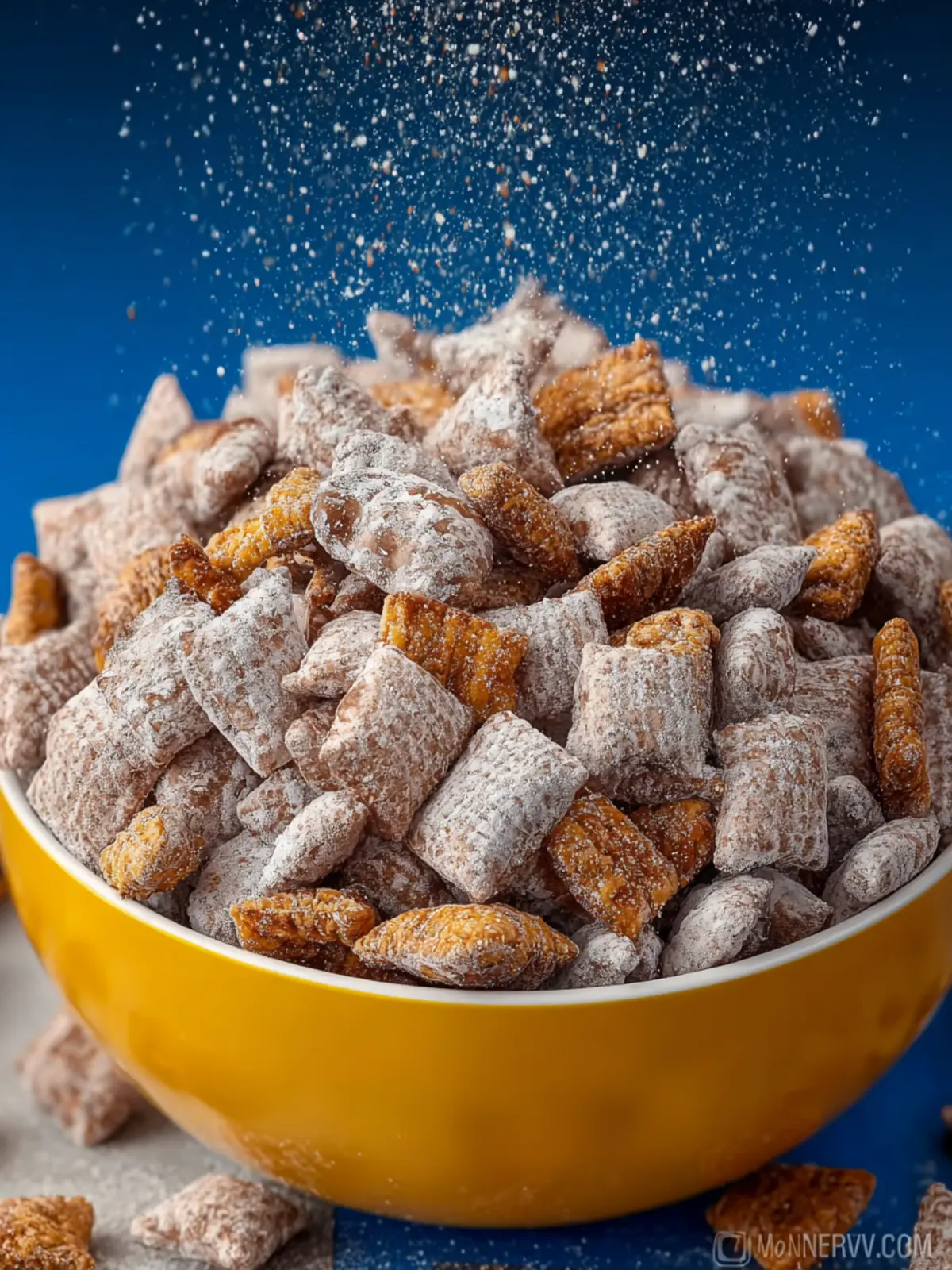 • Powdered Sugar: After coating the cereal in chocolate, dusting it with powdered sugar gives the puppy chow that sweet, snowy finish. It enhances the flavor and makes it visually appealing.