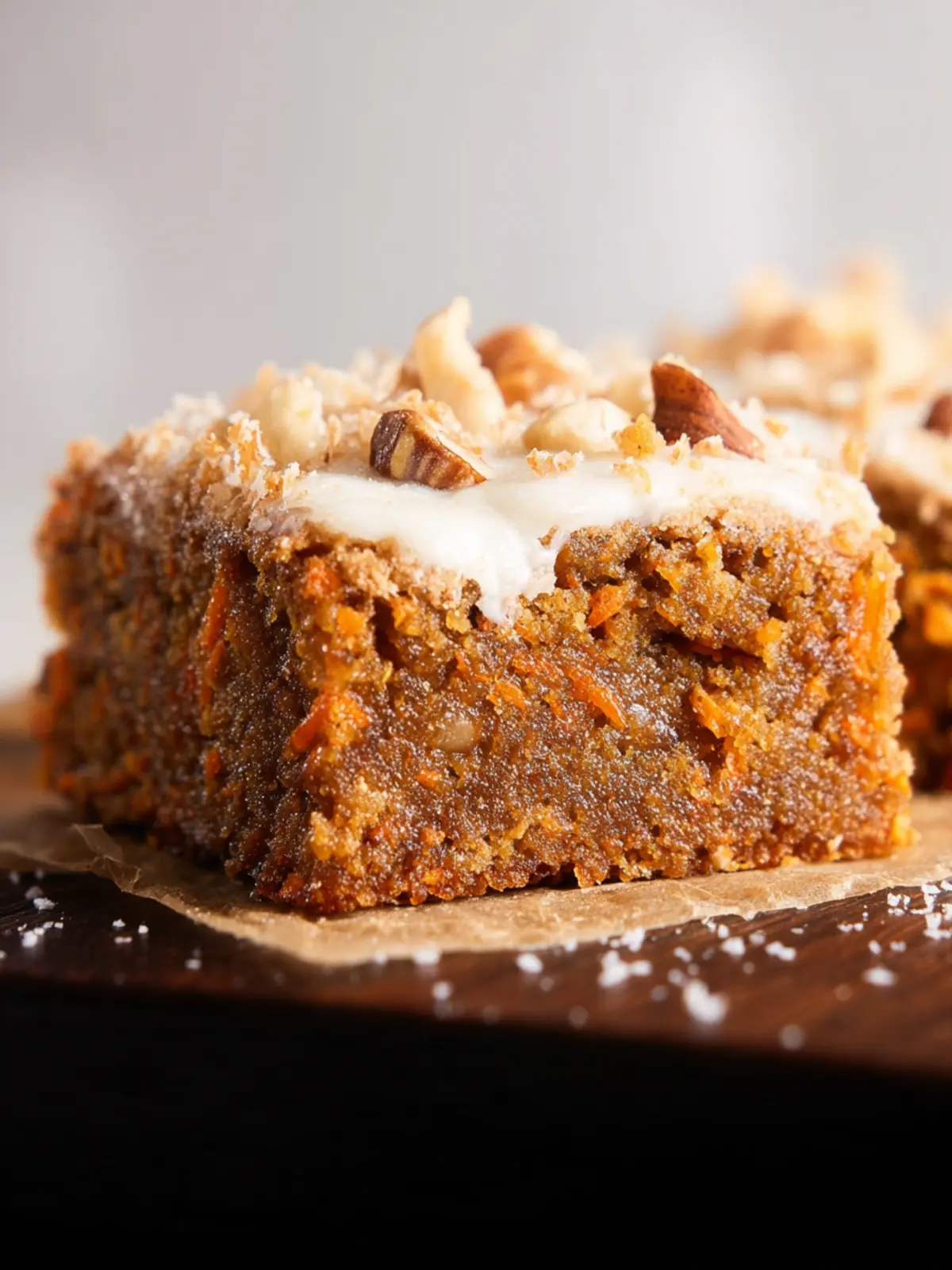 Flavor Fusion: With the aromatic spices of cinnamon and nutmeg, combined with the natural sweetness of carrots, these blondies offer a taste experience unlike any other. The blending of these flavors creates a familiar yet unique profile that is both comforting and exciting.