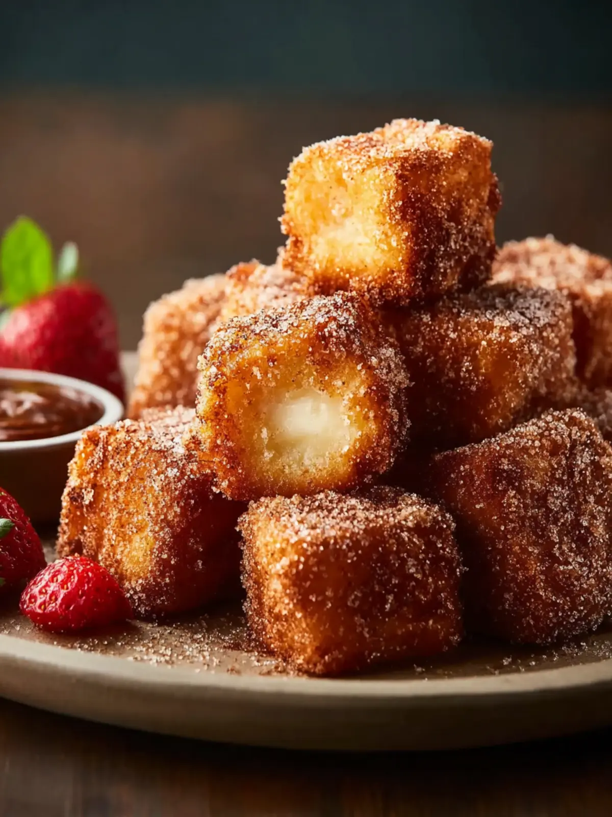 These crispy angel cake churro bites are delightful, sweet treats perfect for any occasion. Made from store-bought or homemade angel food cake, they are fried to a golden finish and coated in cinnamon sugar.