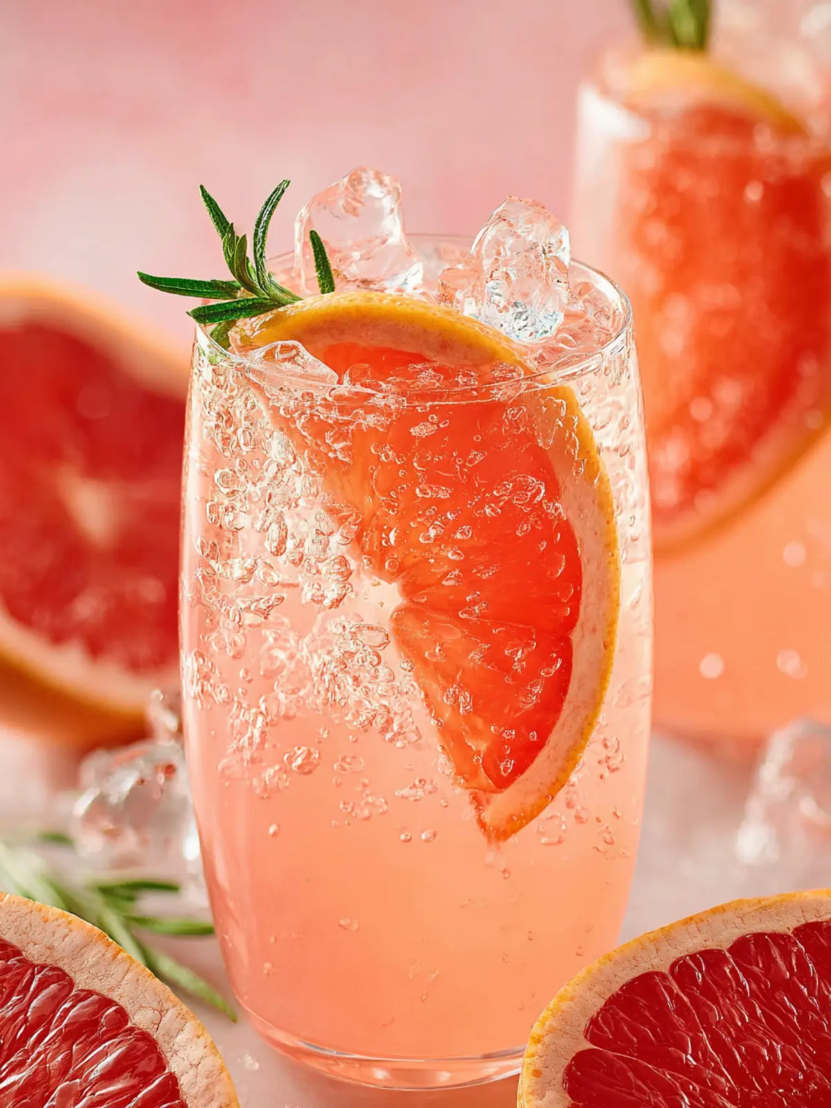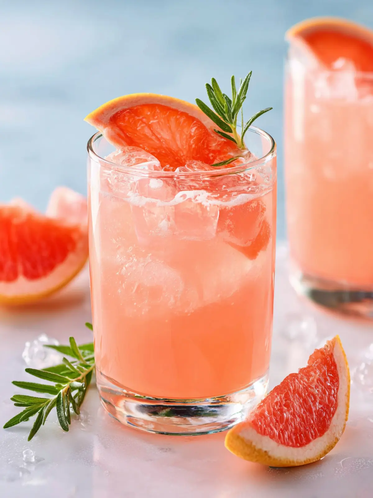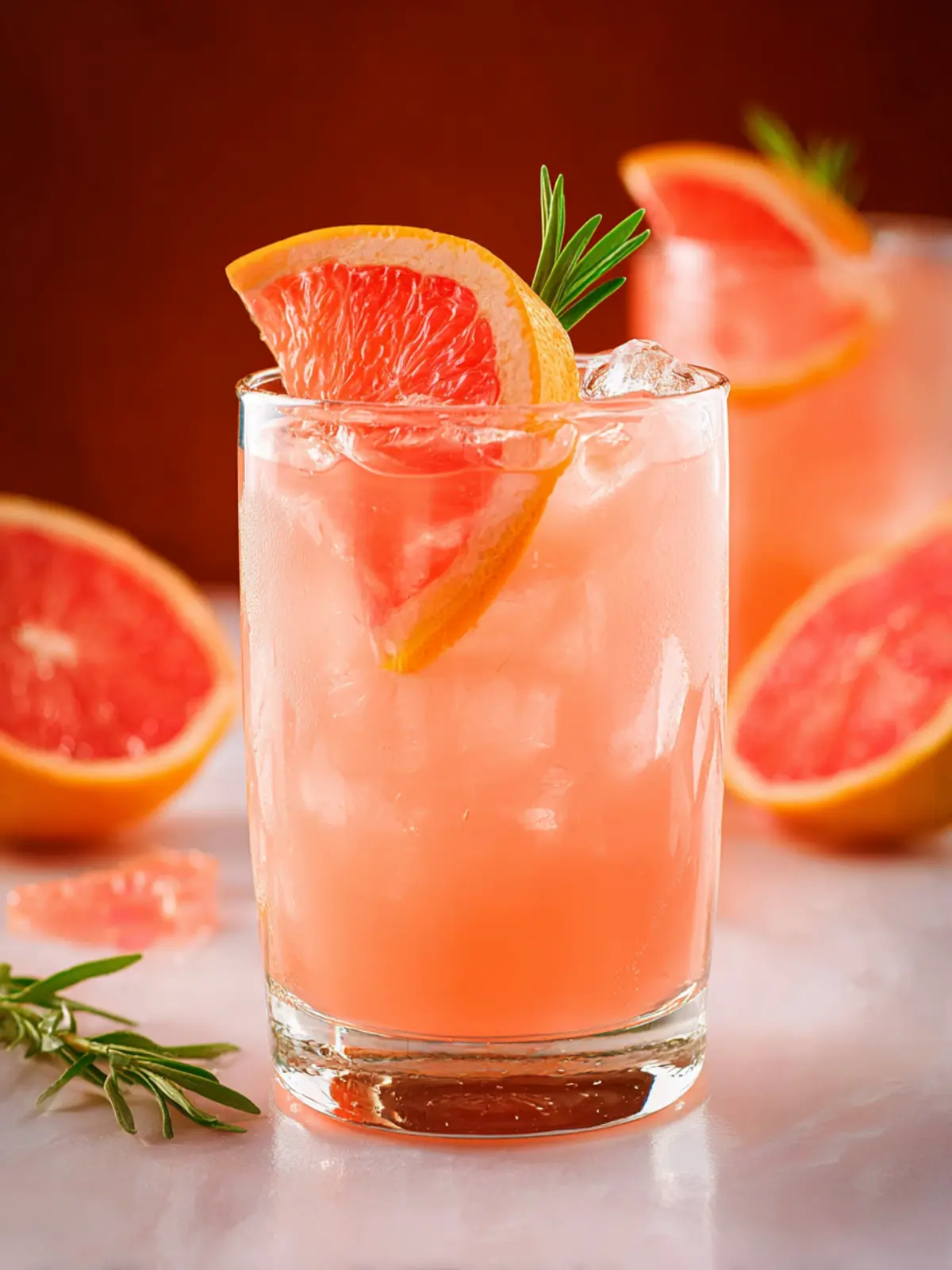 - Garnish with 2 fresh rosemary sprigs and 2 grapefruit slices.