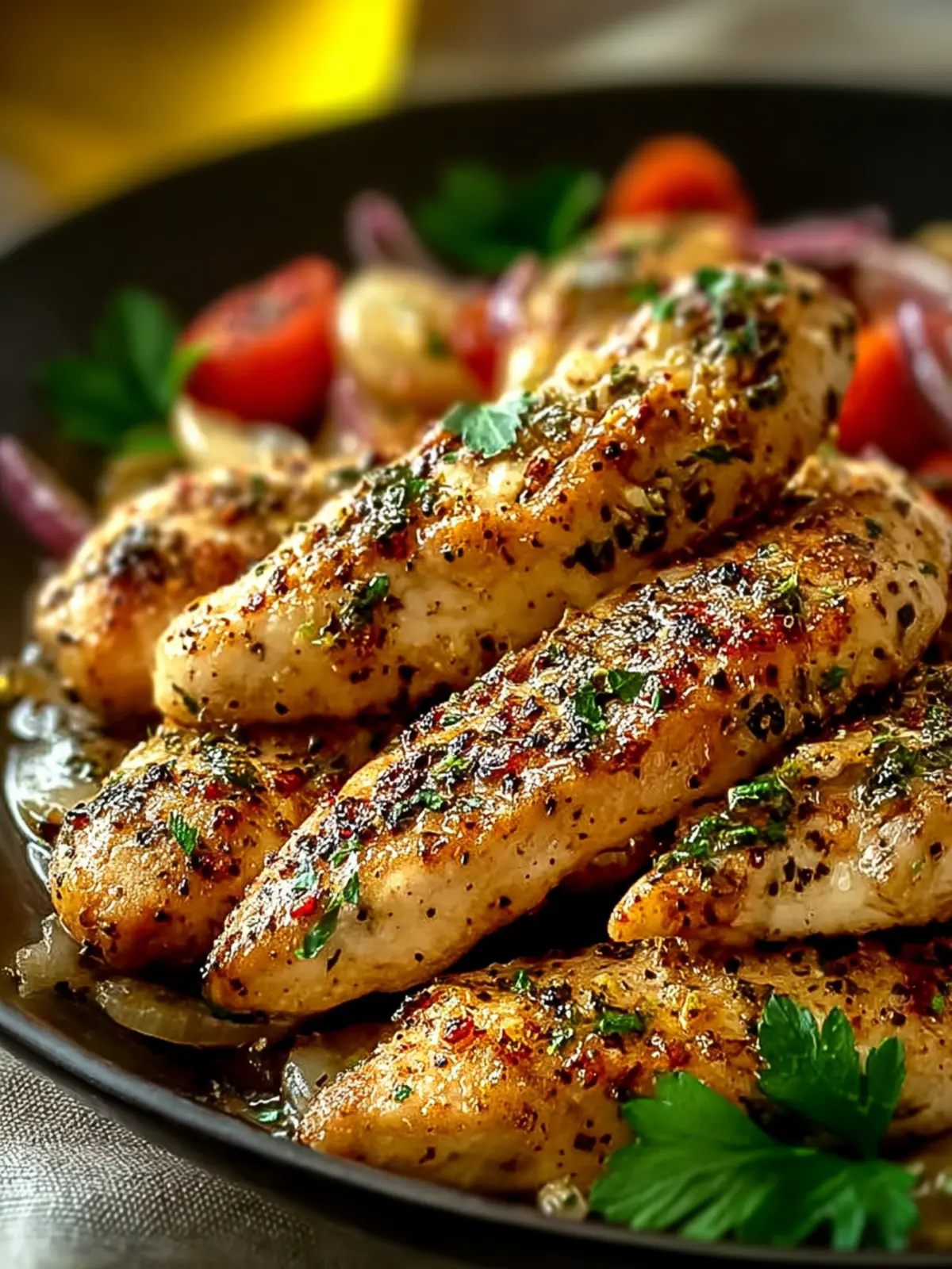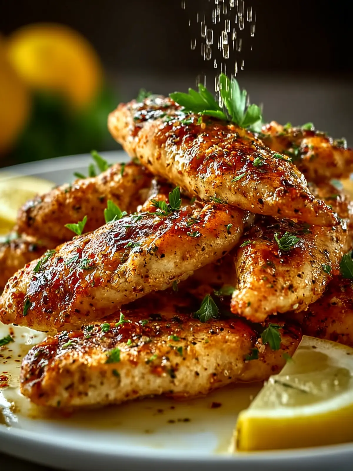 For a vibrant presentation, serve your chicken tenders with fresh herbs like parsley or dill sprinkled on top. This not only adds a burst of color but also an additional layer of flavor.