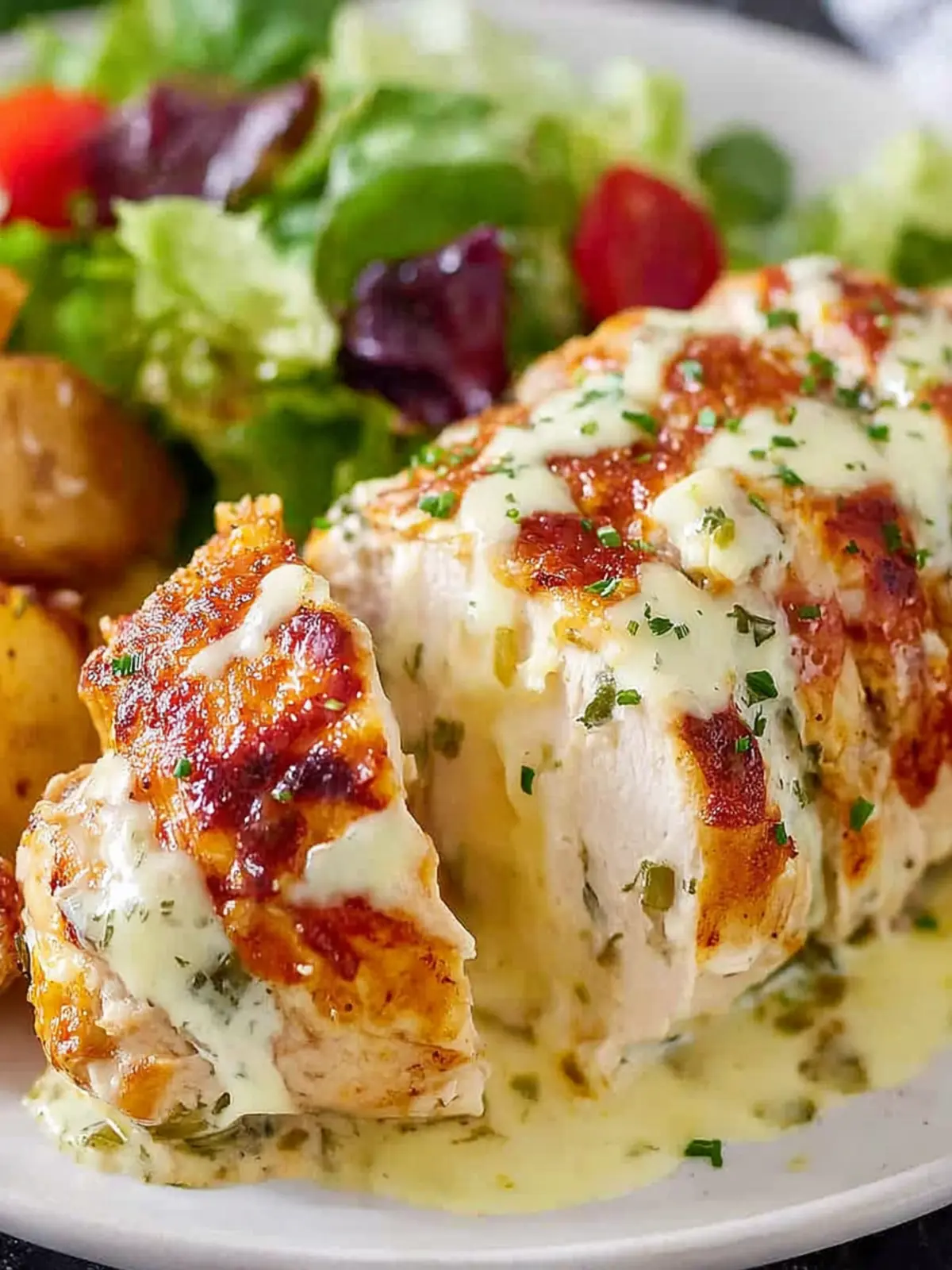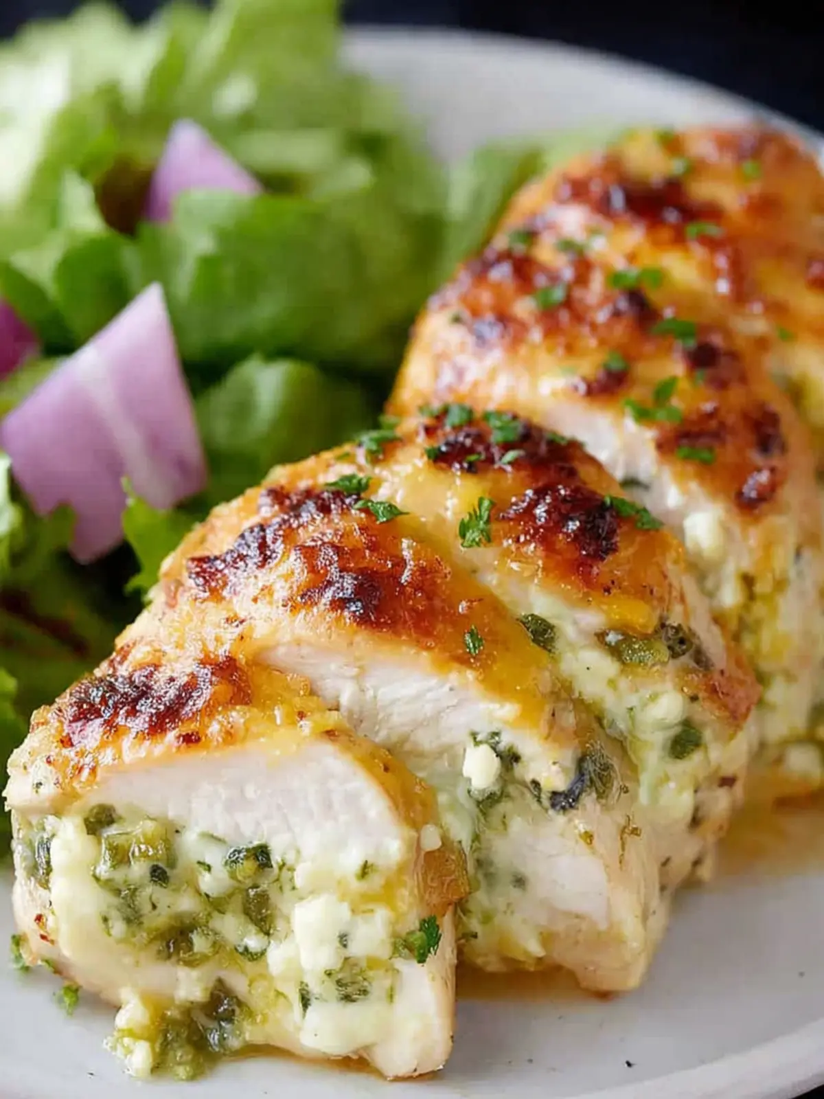 Take your dish to the next level by stuffing the slices with ingredients like cream cheese mixed with diced green chiles or your favorite salsa. This not only adds a layer of flavor but also keeps the chicken moist and succulent.