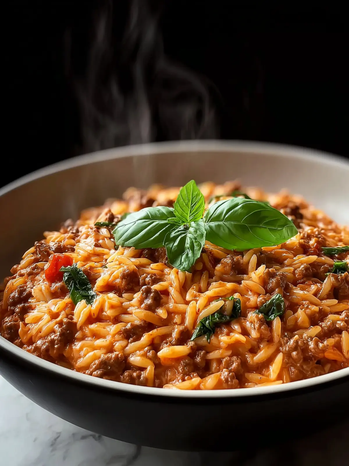 Introduction to Ground Beef Orzo with Tomato Cream Sauce