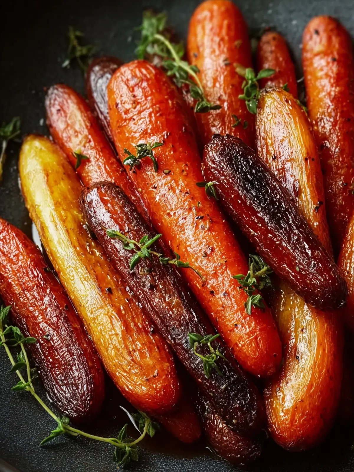 Delicious roasted carrots coated in honey and fresh thyme.