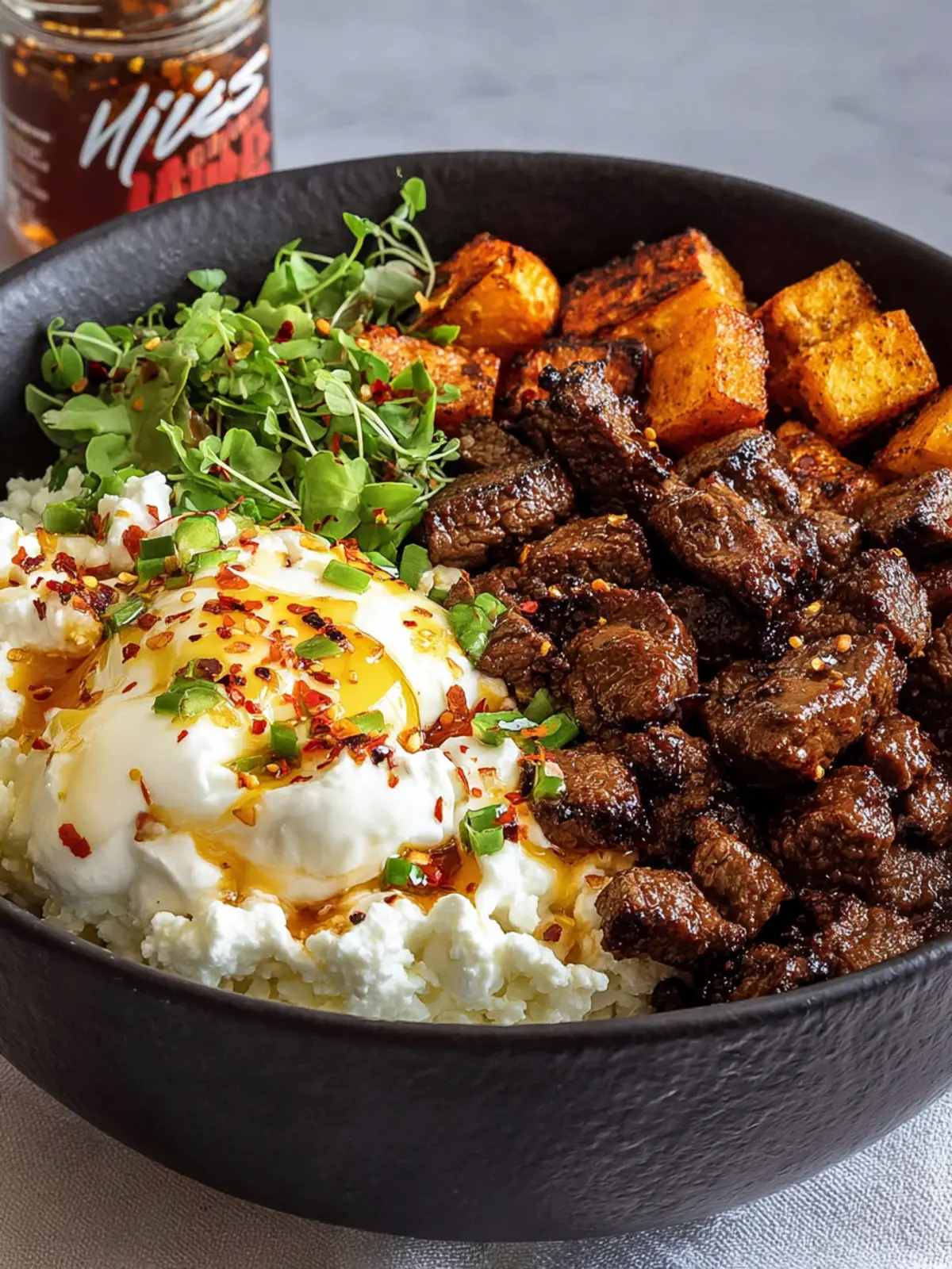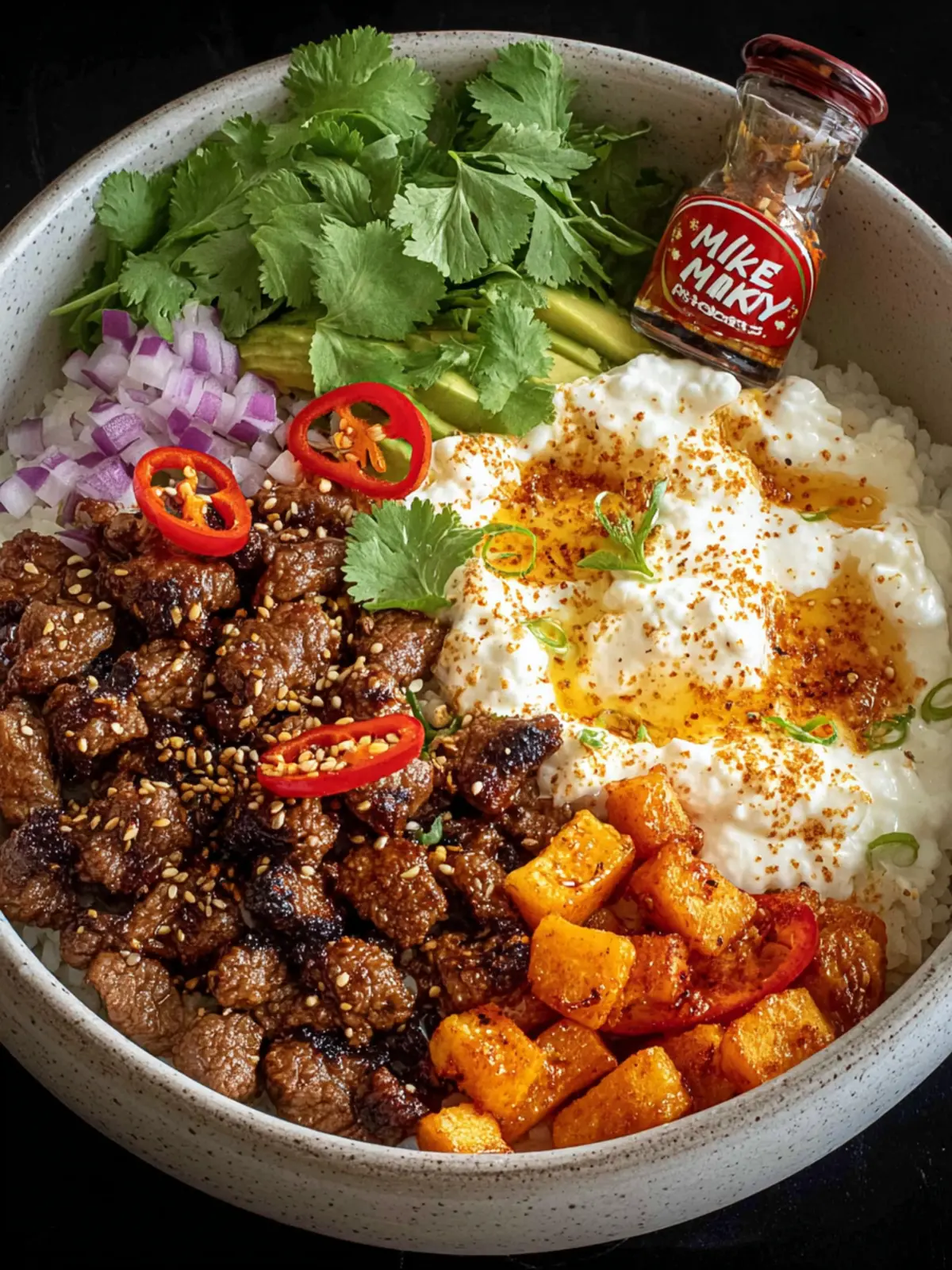 Hot Honey Beef Bowl: Irresistibly Spicy & Creamy Cottage Cheese