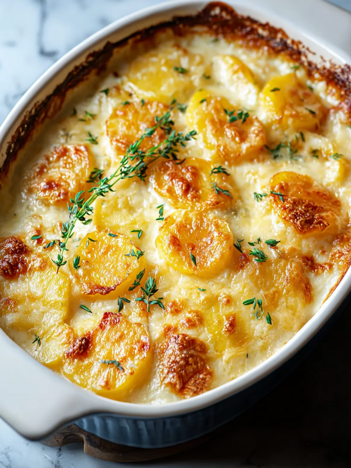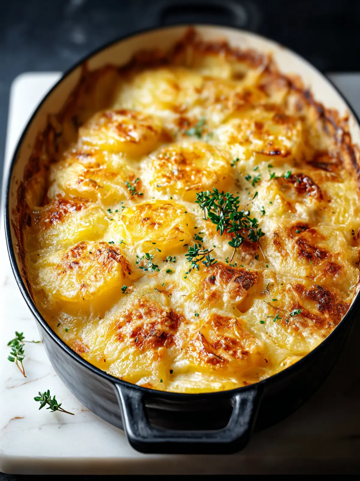 A creamy and cheesy potato gratin that is perfect as a side dish for any meal.