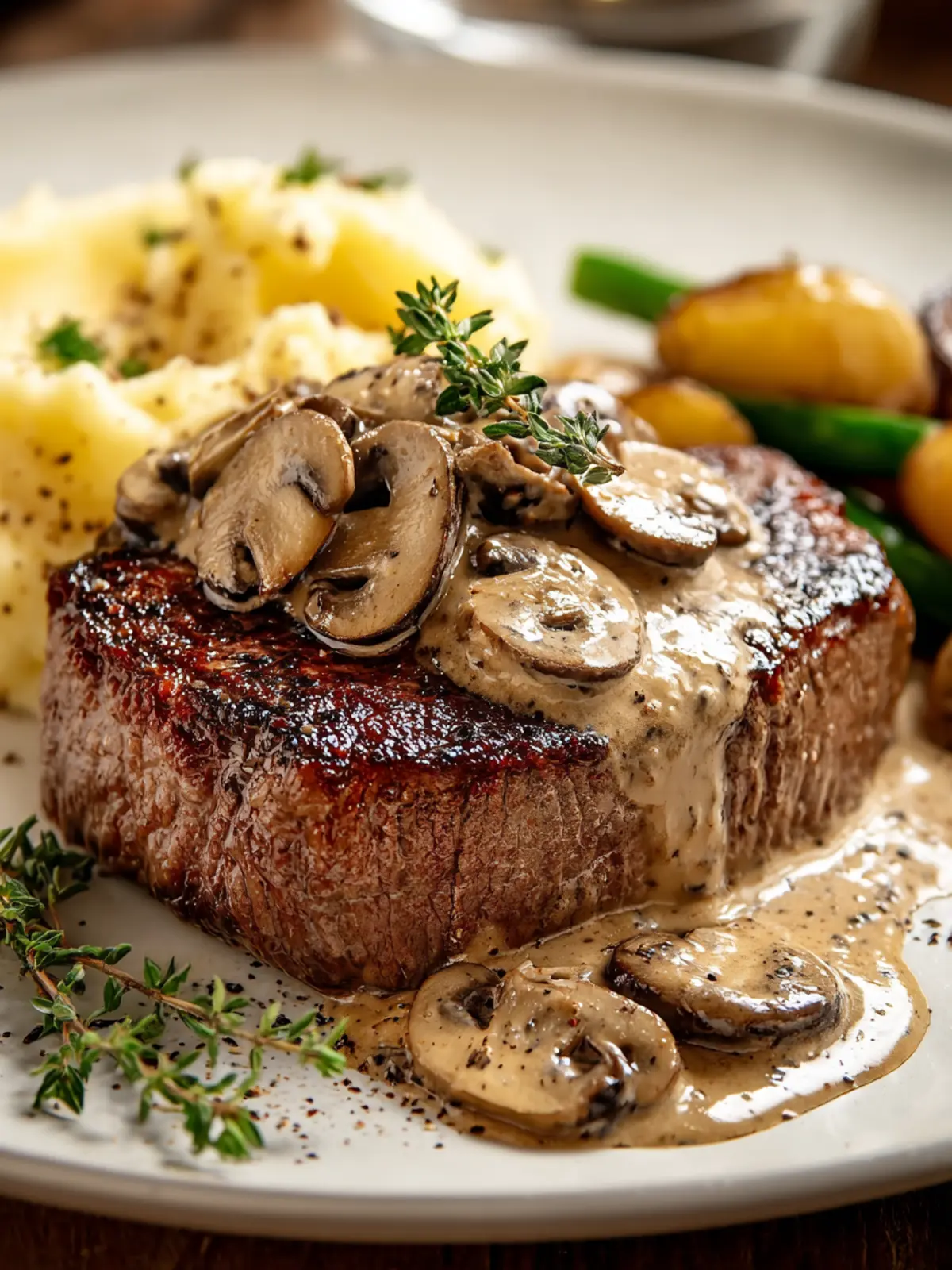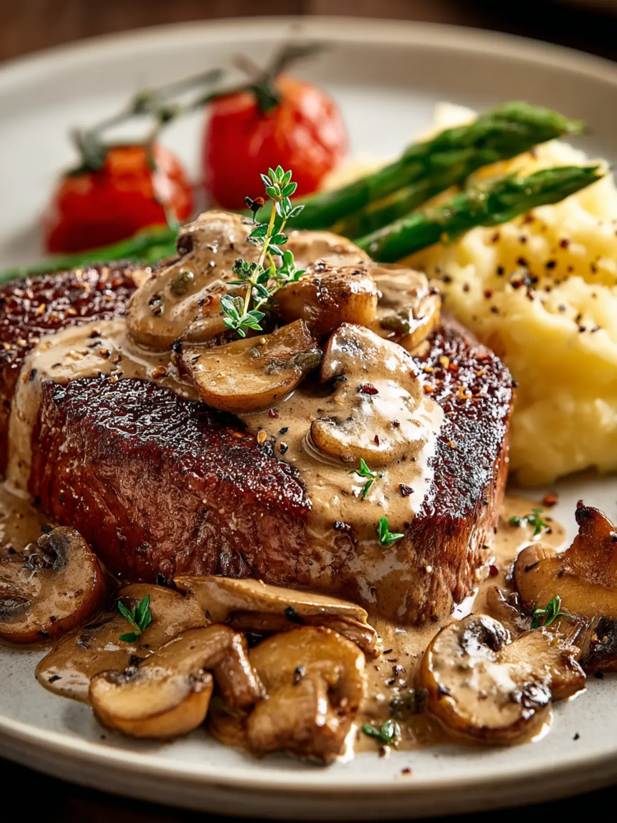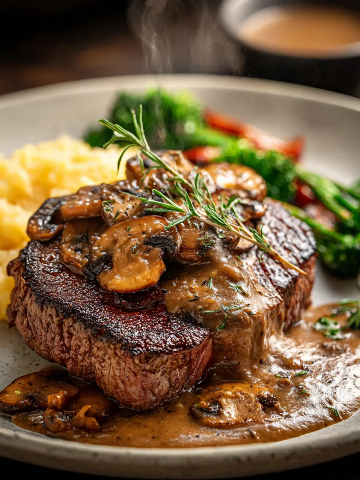 Classic Pairings: Serve your steak topped with irresistible mushroom sauce alongside a side of garlic mashed potatoes or creamy polenta. The sauce seeps into both, creating a delightful harmony of flavors.