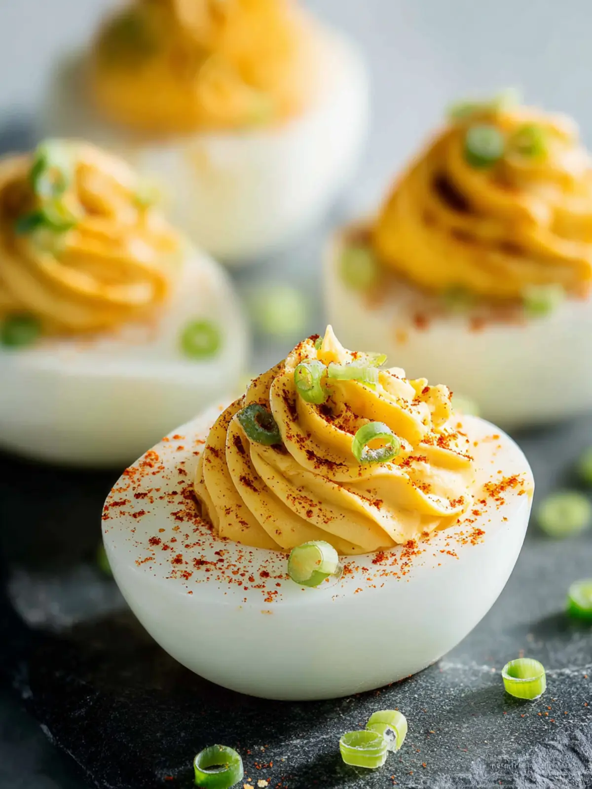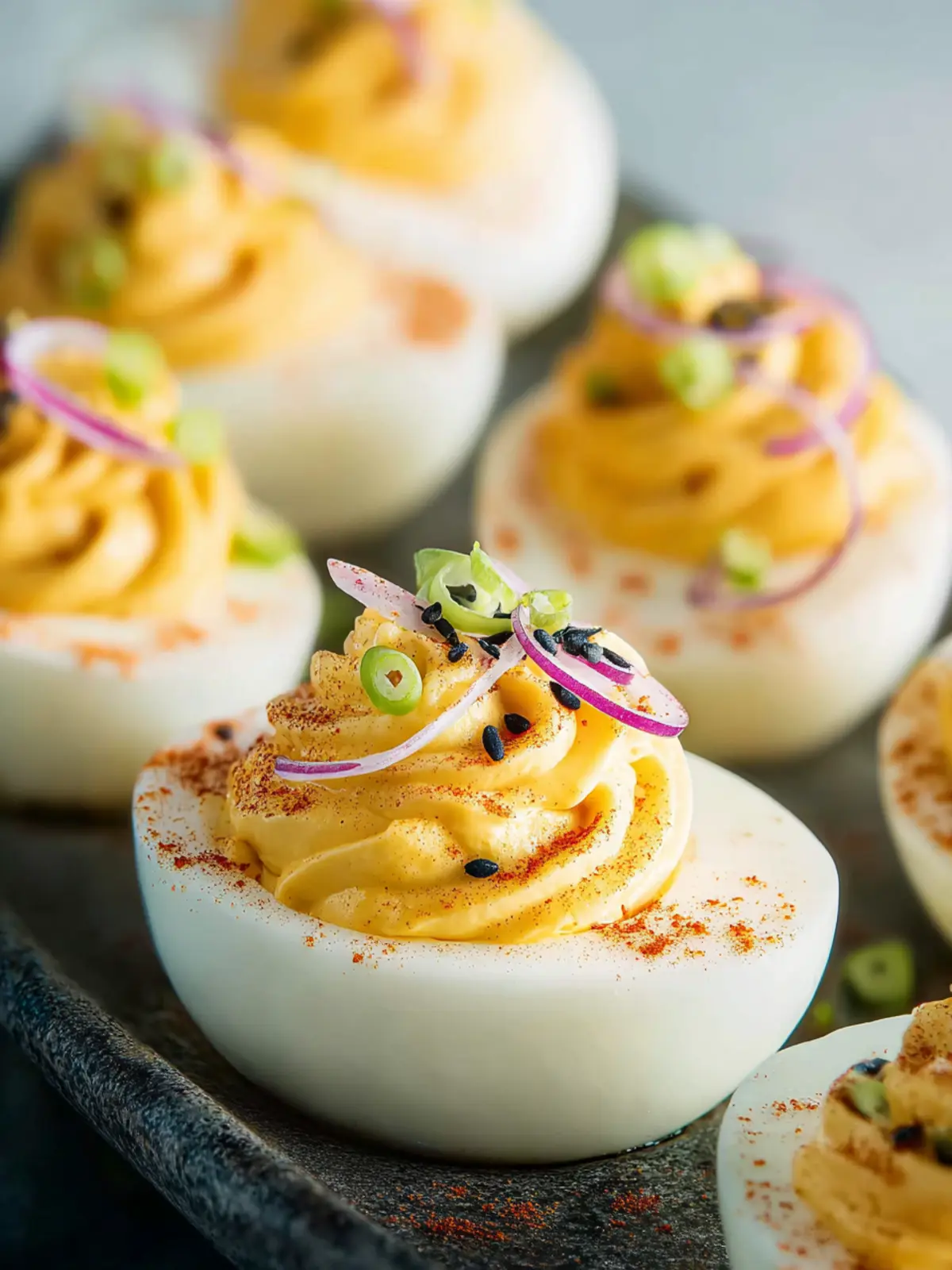 Sprinkling your deviled eggs with different toppings can add a fresh twist. Try: