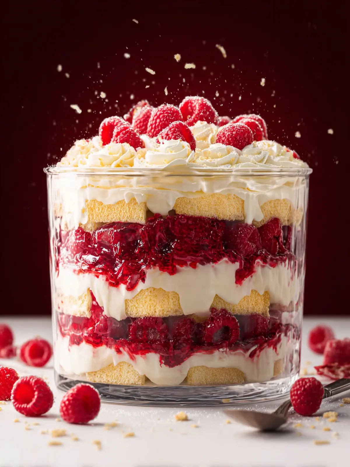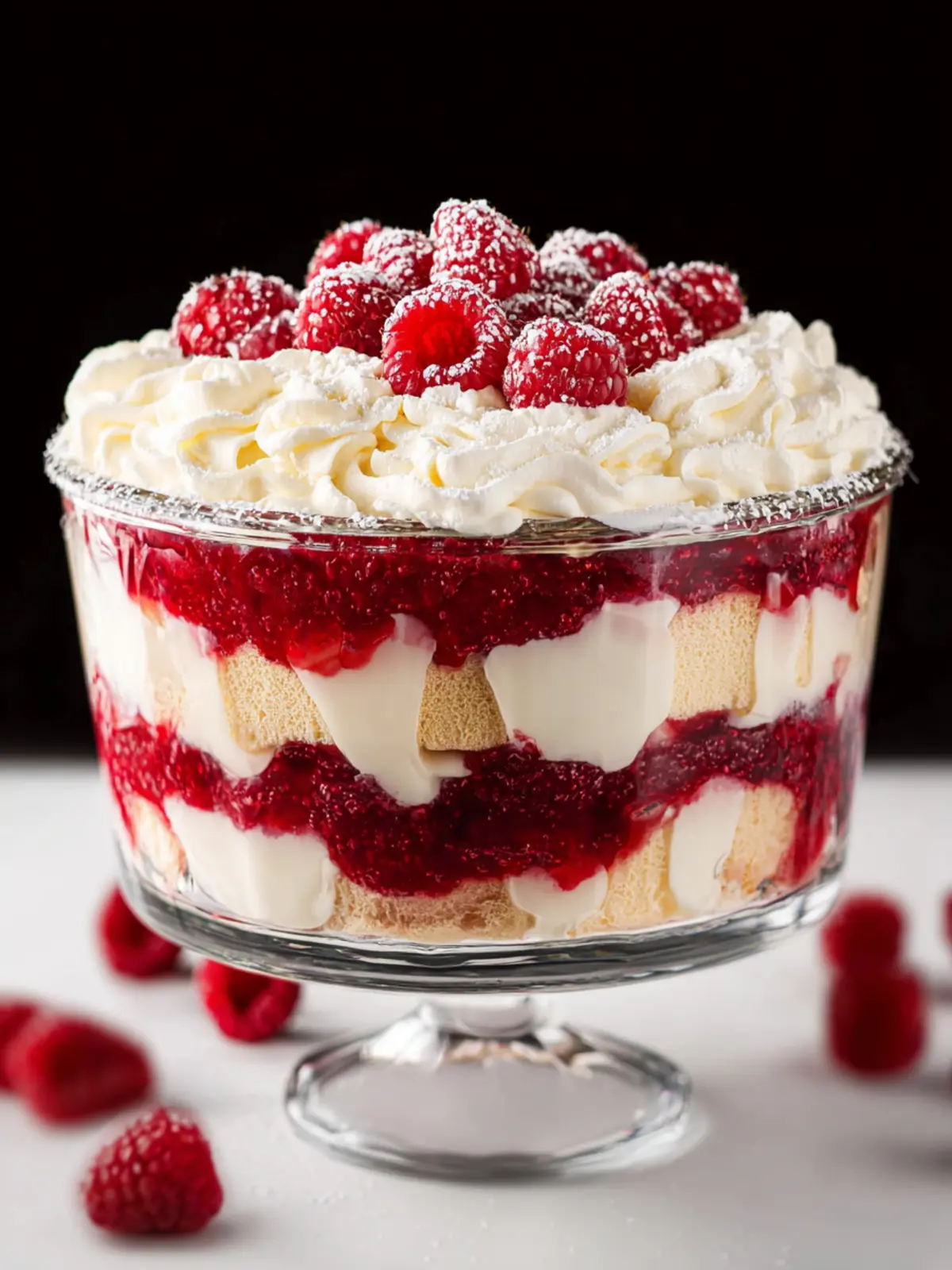Ladyfingers: These delicate sponge biscuits provide structure to the trifle while absorbing the flavors of the white chocolate and raspberry layers. They’re light and airy, making each layer feel indulgent without being overly heavy.
