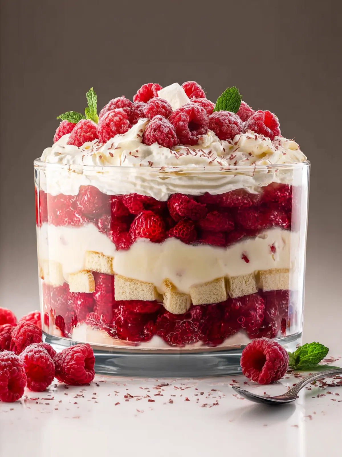 With its delightful combination of textures, this trifle is sure to impress your guests. The lightness of the cream contrasts beautifully with the juicy raspberries. Just one taste, and they’ll be asking for the recipe. So go ahead, indulge, and make memories with this delightful dessert!